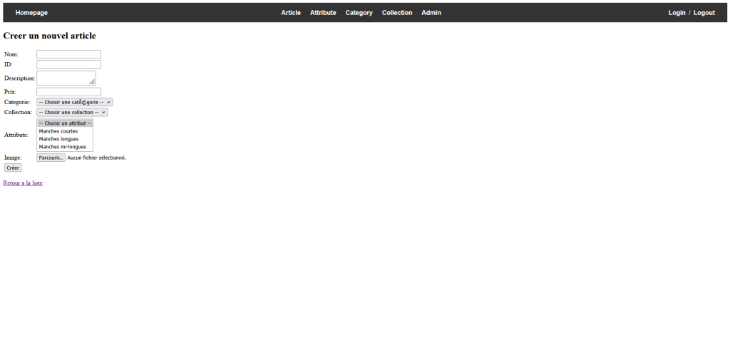 - Formulaire de création d’un nouvel article.